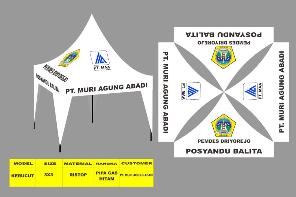 Selamat datang di layanan kami yang menawarkan jasa pembuatan tenda kerucut/limas dengan berbagai spesifikasi dan ukuran. Kami menyediakan tenda berkualitas dengan material terbaik untuk berbagai keperluan acara Anda.